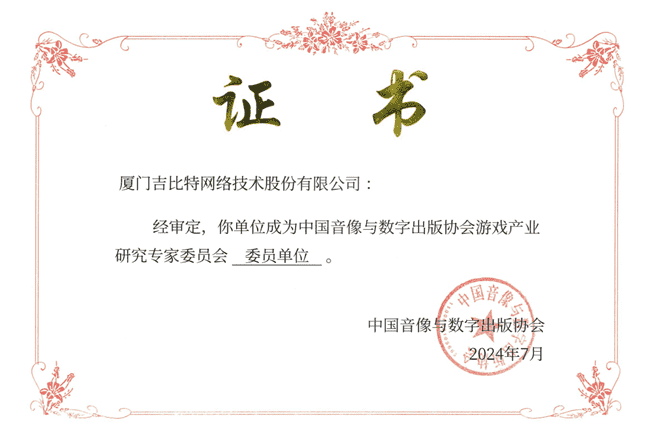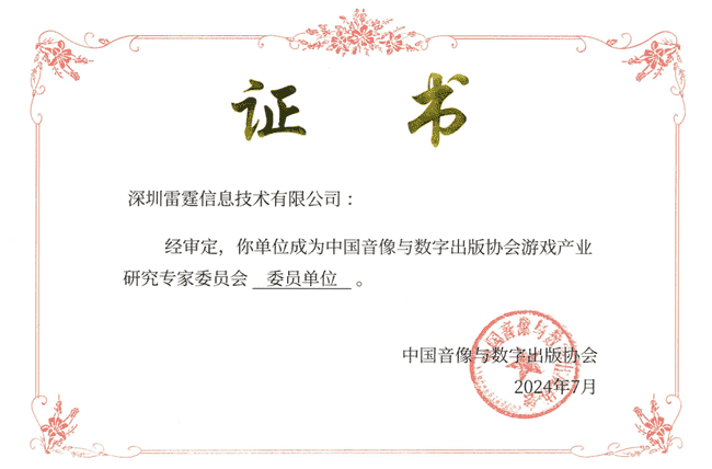 2024年7月25日,,,,中国音像与数字出版协会游戏产业研究专家委员会(以下简称“中国音数协游戏专委会”)成立大会在上海市召开,,,,厦门J9.COM网络技术股份有限公司及其子公司深圳雷霆信息技术有限公司(以下统称“公司”)正式成为中国音数协游戏专委会委员单位。。