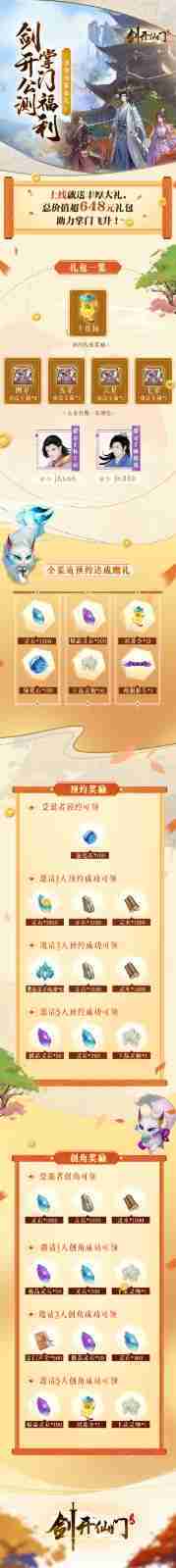 游戏为大家准备了海量的福利,,包括上线即可获得的全渠道预约礼包、、十连抽等福利,,,输入密令“JK666”、、、、“JK888”即可领取紫色弟子,,达到金丹期后还有功法宝箱可领,,,助力全宗上下实力提升……所有奖励总价值超过648元,,,而邀请好友一起体验,,更可以获得额外的奖励哦~